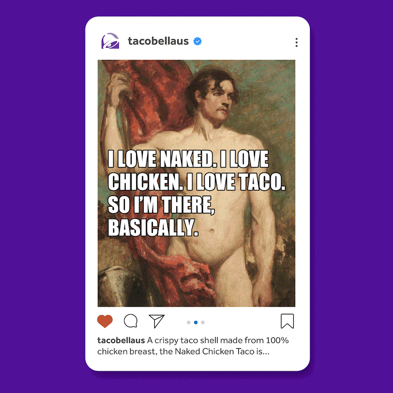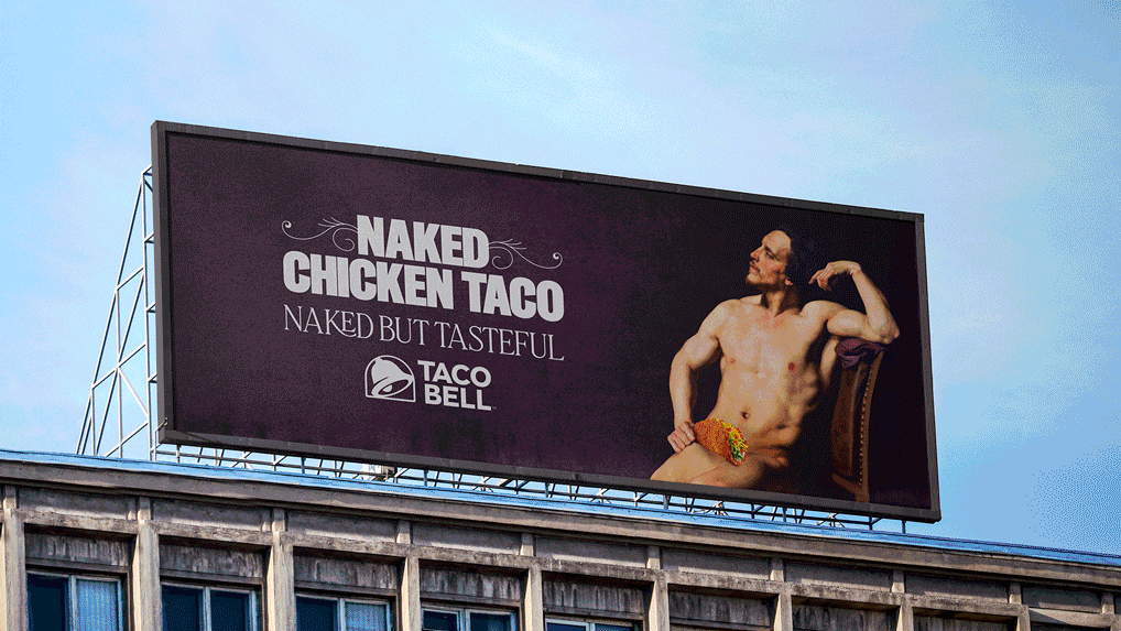 Taco Bell’s Naked Chicken Taco has removed its ordinary shelled sheath and donned a far superior, tastier, crisper chicken shell. To launch this delicious masterpiece, we used nude Renaissance artworks with their nakedness tastefully covered… by Naked Chicken Tacos. How positively exquisite!